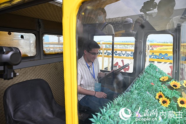 Harri Calum Dewi attempts to drive a "retired" mining truck. (People's Daily Online/Kou Yanan)