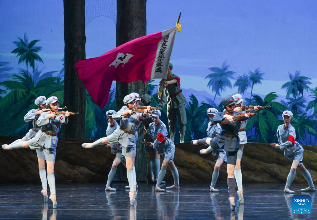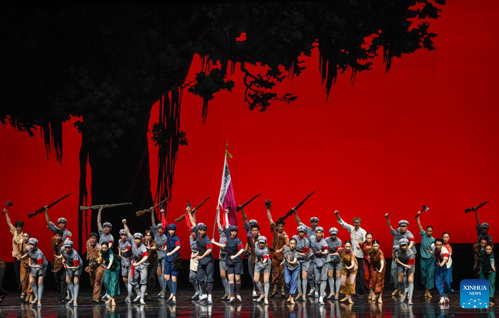 Dancers of National Ballet of China perform "The Red Detachment of Women" during the 6th China Xinjiang International Dance Festival in Urumqi, northwest China's Xinjiang Uygur Autonomous Region, Aug. 4, 2023. (Xinhua/Wang Fei)