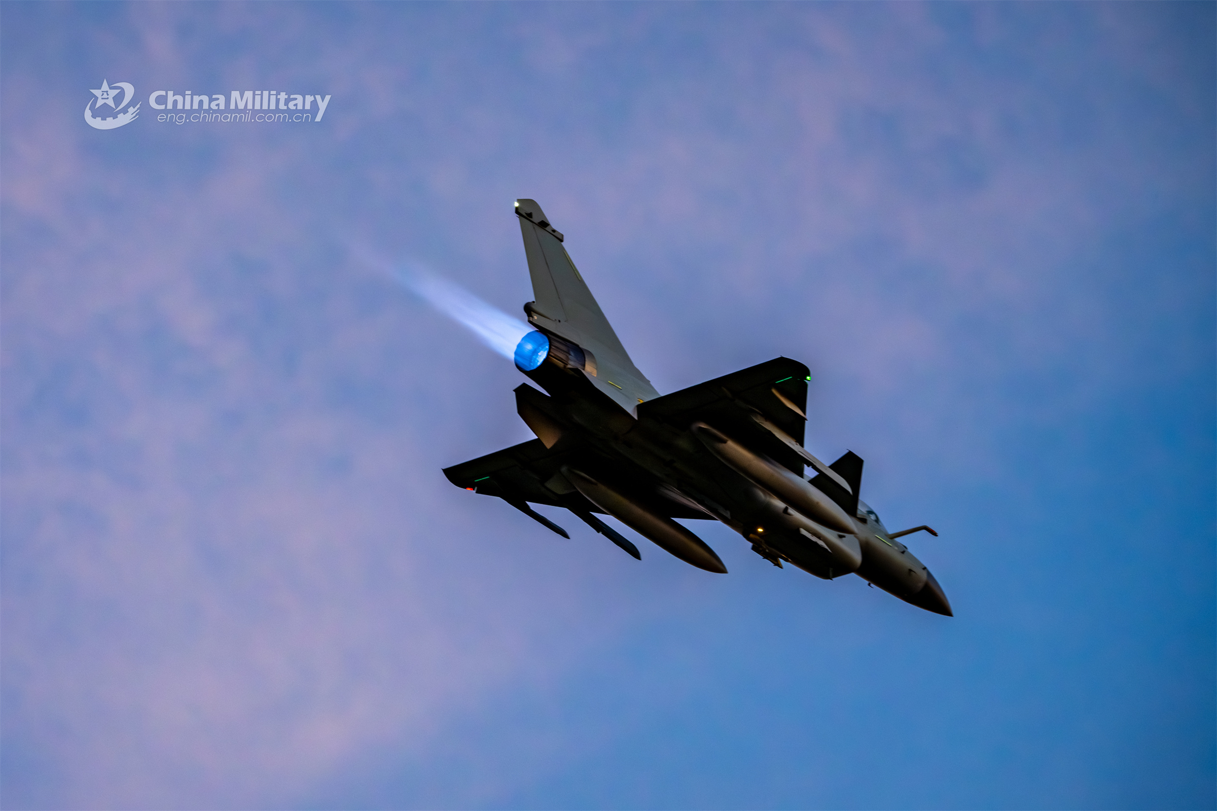 A J-10 fighter jet attached to an aviation brigade of the air force under the PLA Southern Theater Command soars into the sky during a recent flight training exercise. (eng.chinamil.com.cn/Photo by Hou Kaiwen)