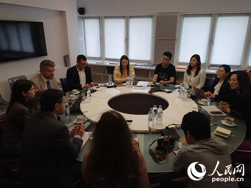 People's Daily Online journalists participate in a roundtable discussion at Russia's RT news network. (People's Daily Online/Shen Yaxin)