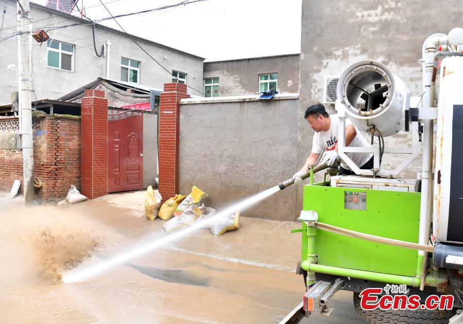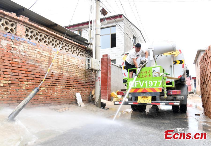 Locals in flood-hit Zhuozhou carried out cleaning-up and disinfection as the floodwaters gradually receded in various parts of the city.