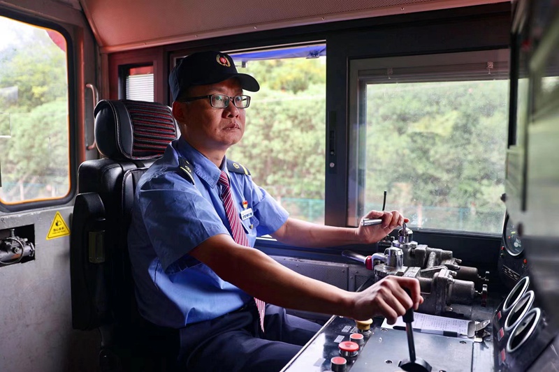 A photo shows Huang Wei, a train driver on the Yiwu-Xinjiang-Europe freight train route. (Photo courtesy of the interviewee)