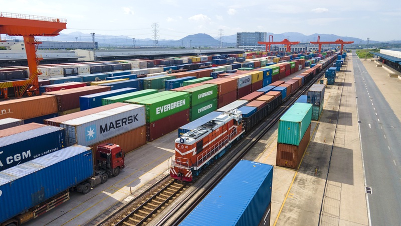 "The Yixin'ou route has promoted high-level opening up and enabled the transportation of over 10,000 types of goods," said Bi Fei, deputy general manager of Yiwu Land Railway Port Development Co., Ltd.