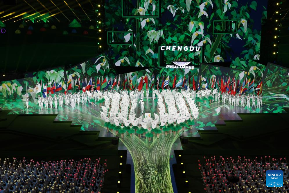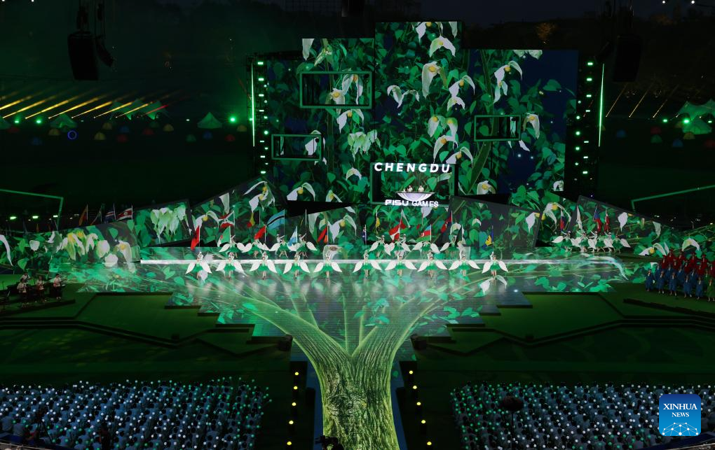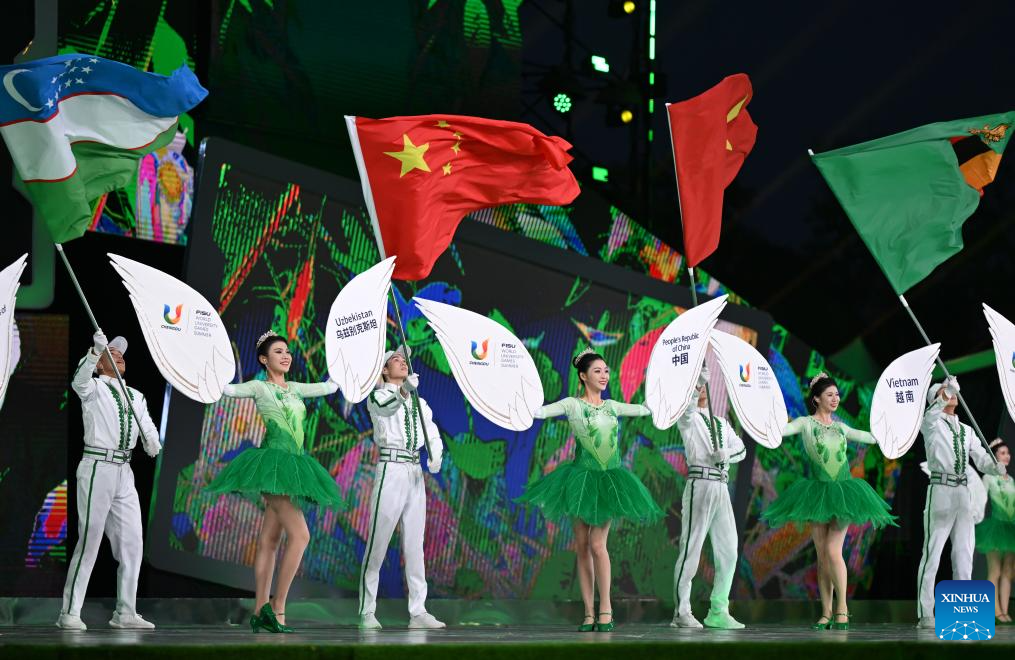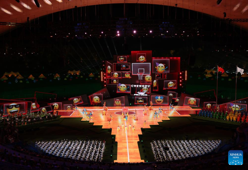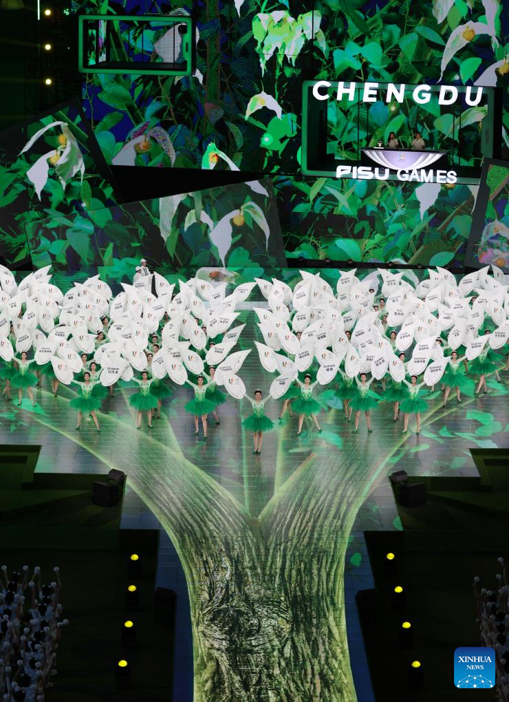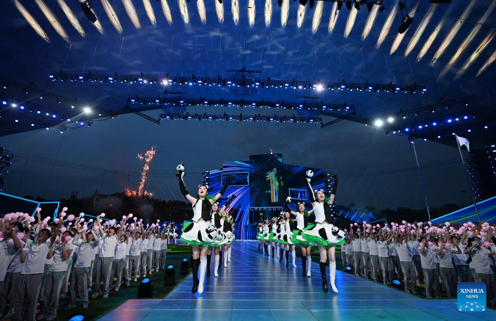 A performance is held during the closing ceremony of the 31st FISU Summer World University Games in Chengdu, southwest China's Sichuan Province, Aug. 8, 2023. (Xinhua/Wang Xi)