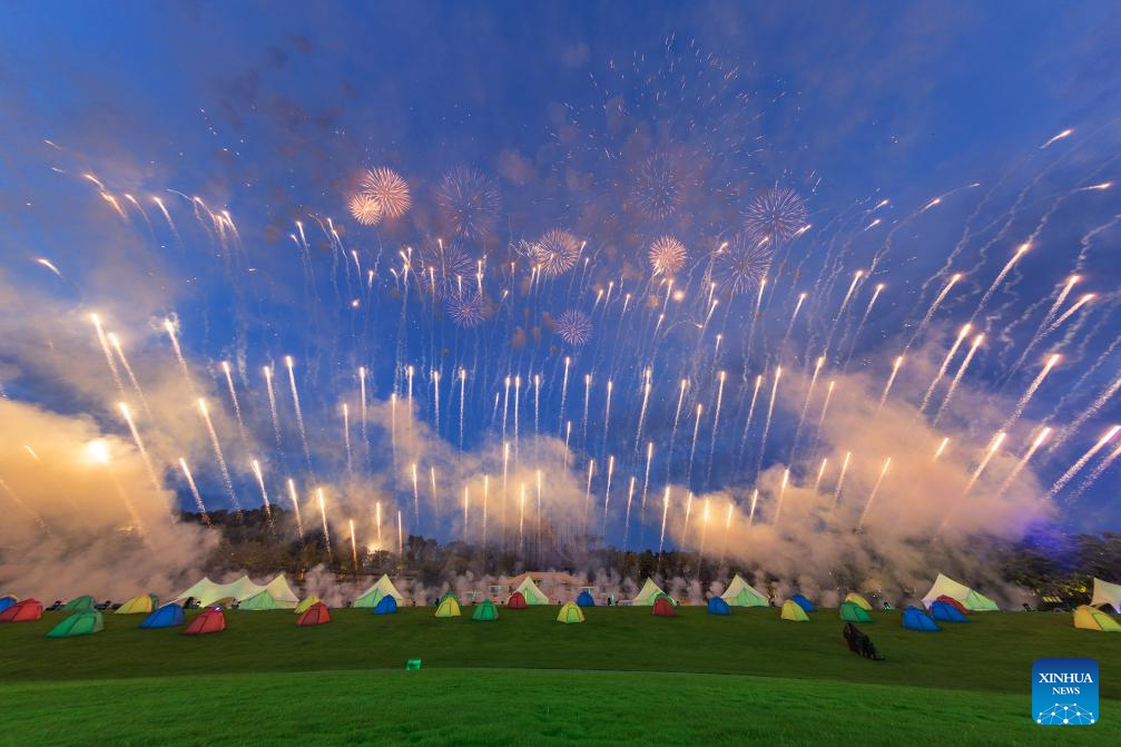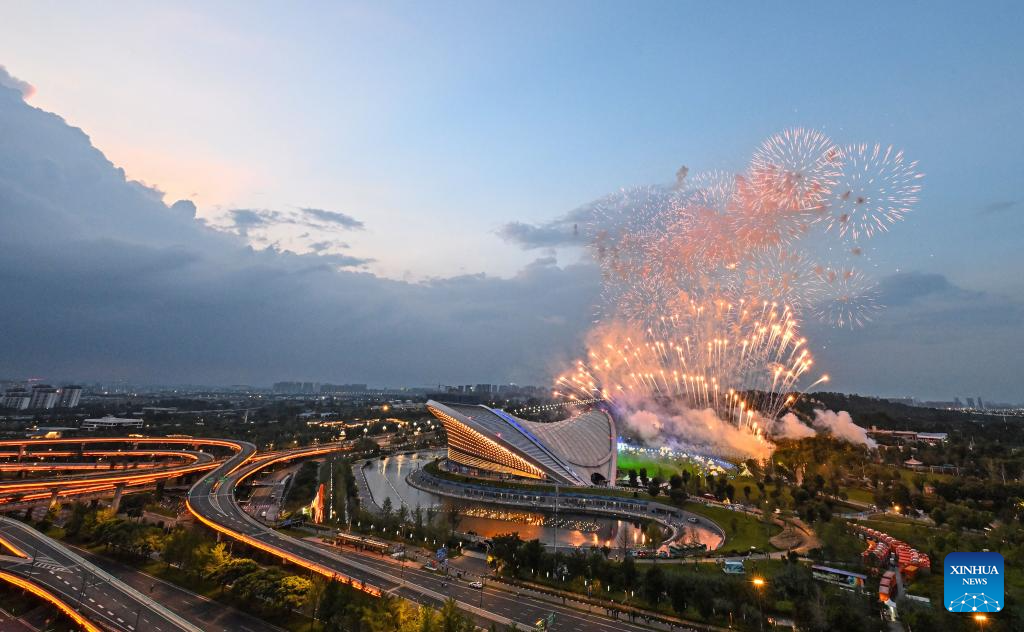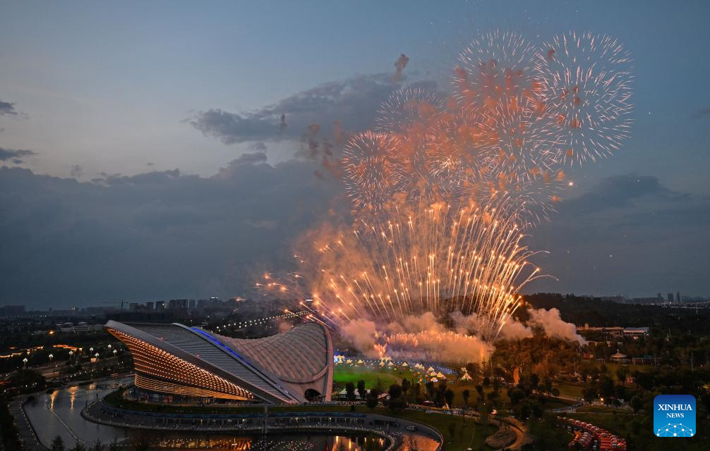 Fireworks are seen during the closing ceremony of the 31st FISU Summer World University Games in Chengdu, southwest China's Sichuan Province, Aug. 8, 2023. (Xinhua/Huang Wei)
