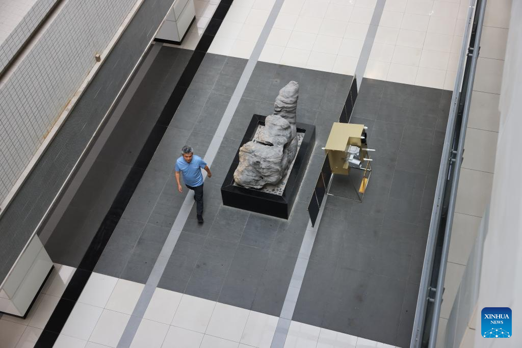 Peng Chengzhi walks past a model of quantum satellite "Micius" in the University of Science and Technology of China in Hefei, east China's Anhui Province, July 21, 2023.?(Xinhua/Jin Liwang)