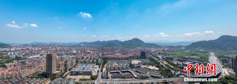Photo shows a panoramic view of Datang subdistrict of Zhuji city, east China's Zhejiang Province. Datang subdistrict is the largest hosiery production base in the world. (Photo/Datang subdistrict)