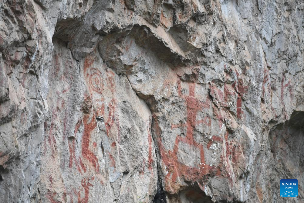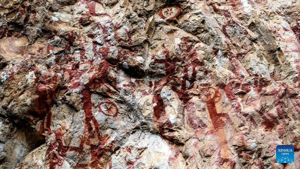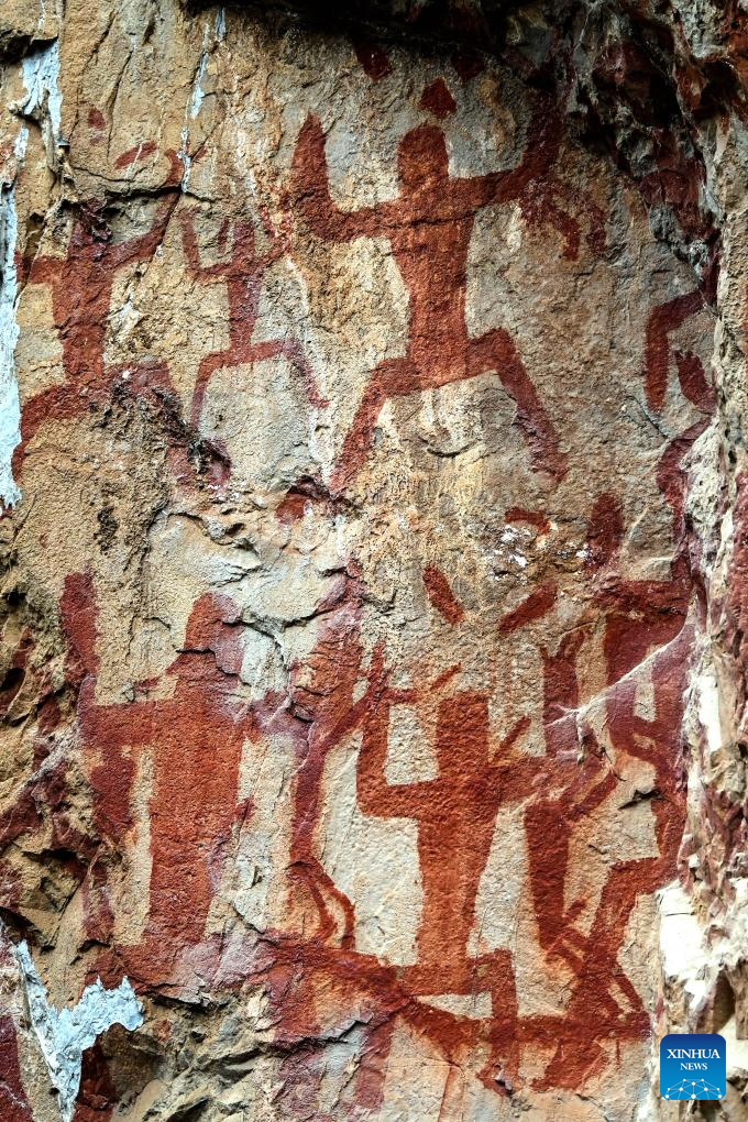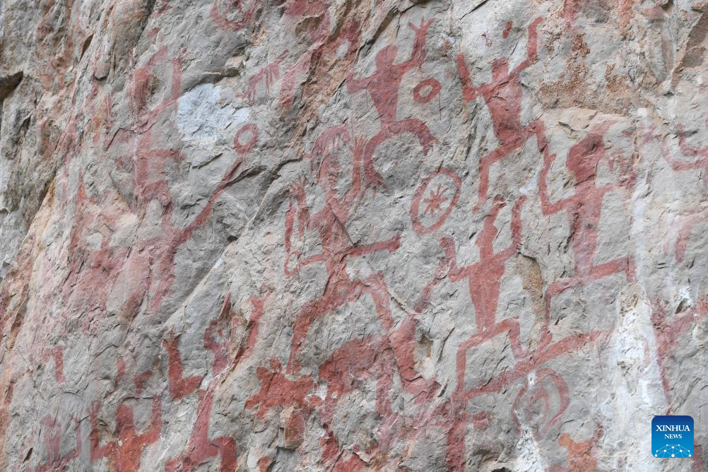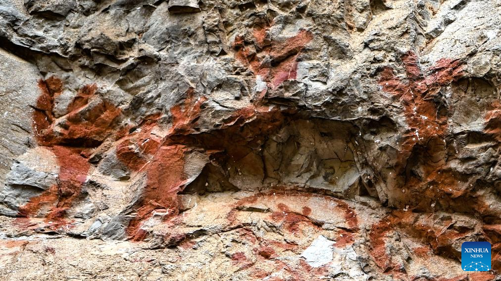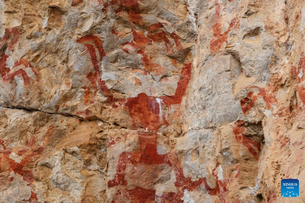 The brownish red paintings, created from the Warring States Period (475-221 BC) to East Han Dynasty (25-220), depict the sacrifices of the Luoyue people, ancestors of today's Zhuang ethnic minority.
