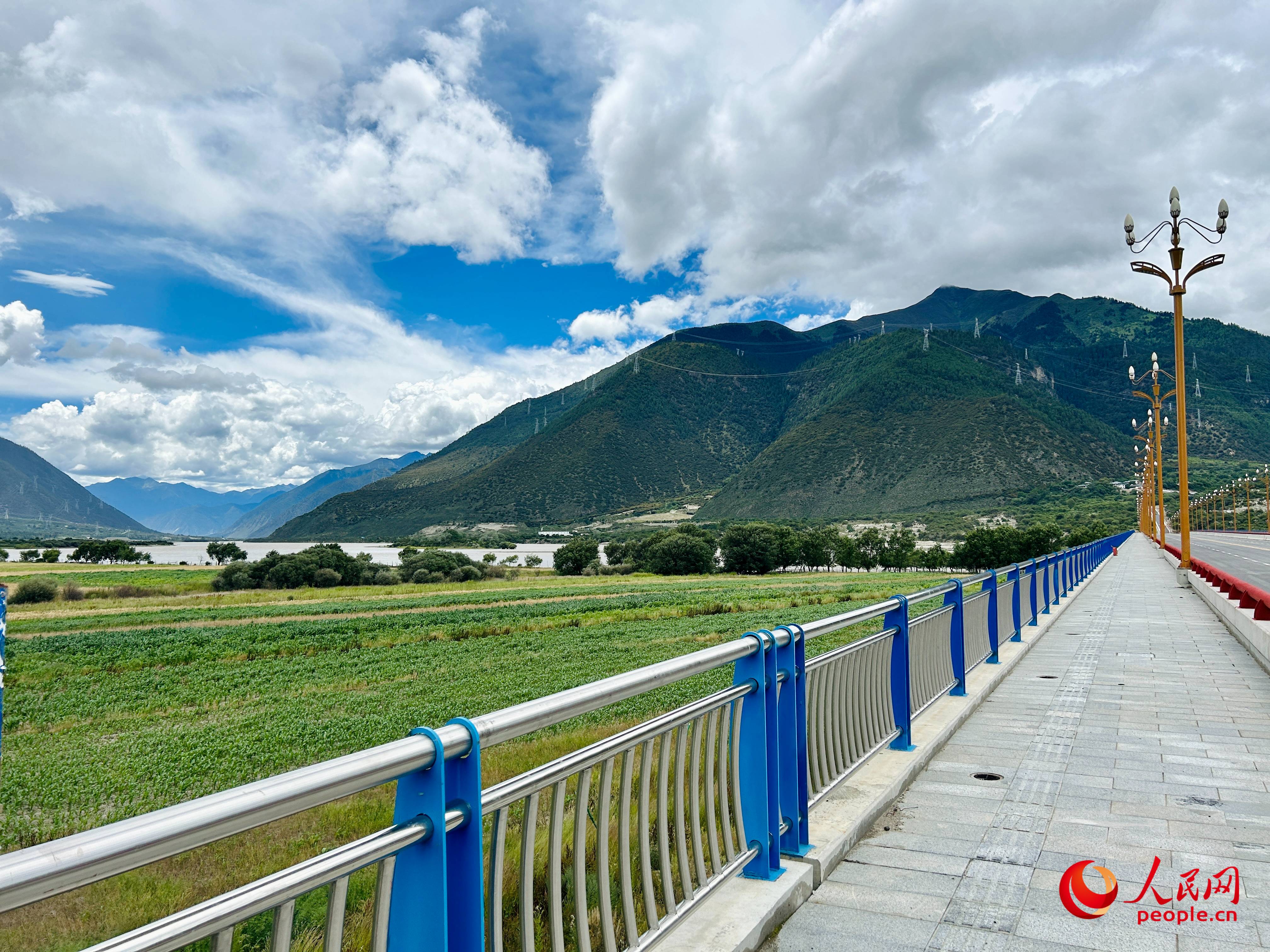 Photo shows a bridge crossing the Yarlung Zangbo River. (People's Daily Online/Zhou Jingyuan)