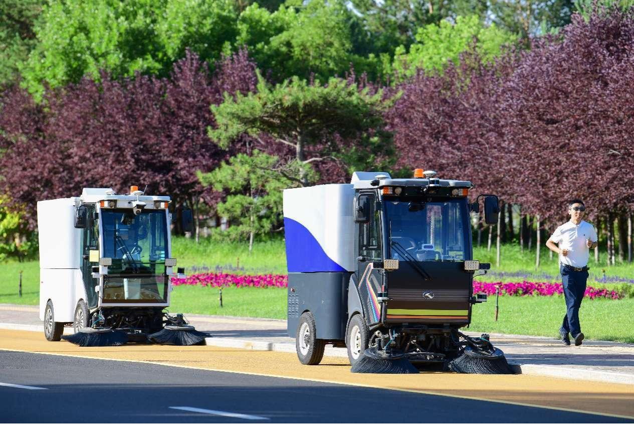 On local roads for testing intelligent connected vehicles (ICVs), autonomous shuttle minibuses provide scheduled pickups for passengers, while self-driving sanitation vehicles carry out automated sweeping tasks.