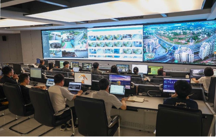 Photo shows the intelligent operations command center of Rongjiang new area in Ganzhou city, east China's Jiangxi province. (People's Daily Online/Zhong Wanshan)