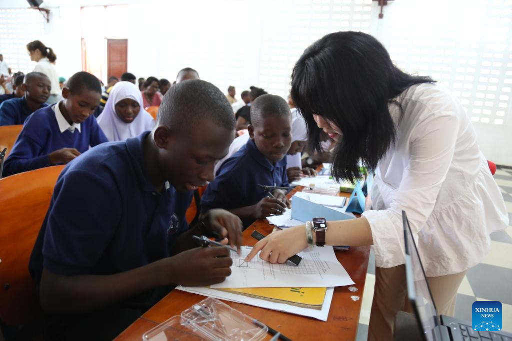 A Chinese teacher instructs a Tanzanian math teacher during a training session under a Tanzania-Shanghai Mathematics program in Dar es Salaam, Tanzania on Aug. 11, 2023. More than 100 Tanzanian mathematics teachers have been trained under a Tanzania-Shanghai Mathematics program focusing on methodologies for teaching mathematics in secondary and primary schools. (Photo by Herman Emmanuel/Xinhua)