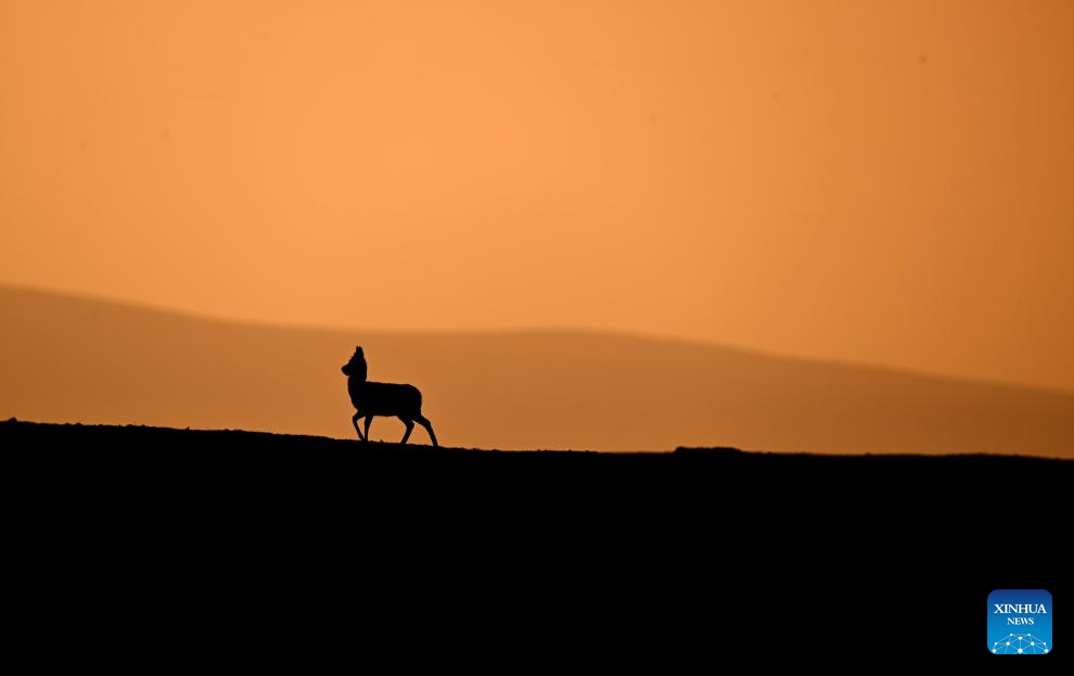Tibetan antelopes are pictured at the Drolkar Lake area in Hoh Xil, northwest China's Qinghai Province, June 18, 2023. (Xinhua/Zhang Hongxiang)
