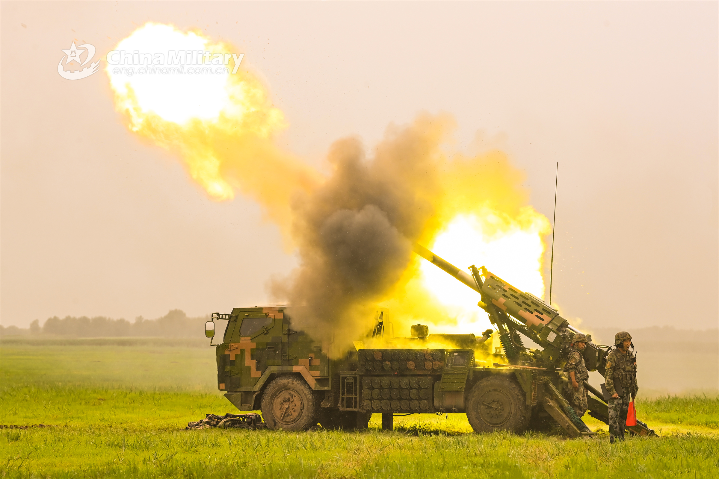 Soldiers assigned to a brigade under the PLA 78th Group Army fire a vehicle-mounted howitzer during a live-fire training exercise in late July, 2023. (eng.chinamil.com.cn/Photo by Liu Yishan)