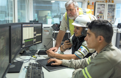 Photo shows employees of COFCO Corporation at work in a dock operation workshop in the Port of Timbues in Argentina. The port is one of the country's most important export hubs for agricultural products. Every year, millions of tonnes of soybeans, corn, wheat and other agricultural products are shipped to destinations around the world from here. COFCO Corporation has built docks and an industrial park here. (Photo/Margarita Escude)