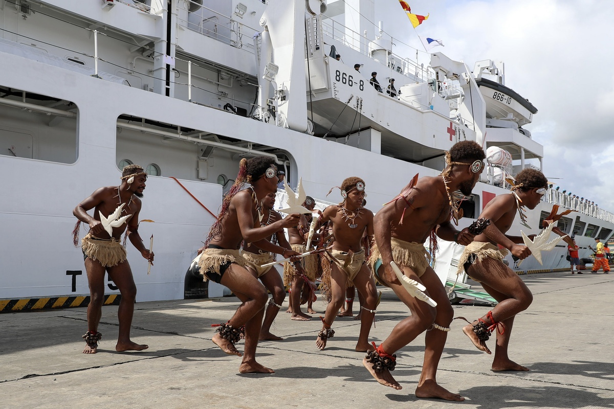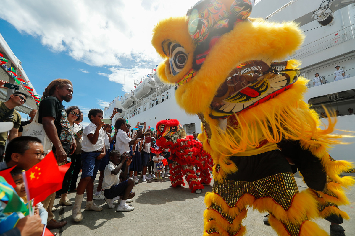 The Chinese naval hospital ship "Peace Ark" arrives at Honiara Port in the Solomon Islands on Aug 19, 2023. [Photo by Gui Jiangbo/For chinadaily.com.cn]