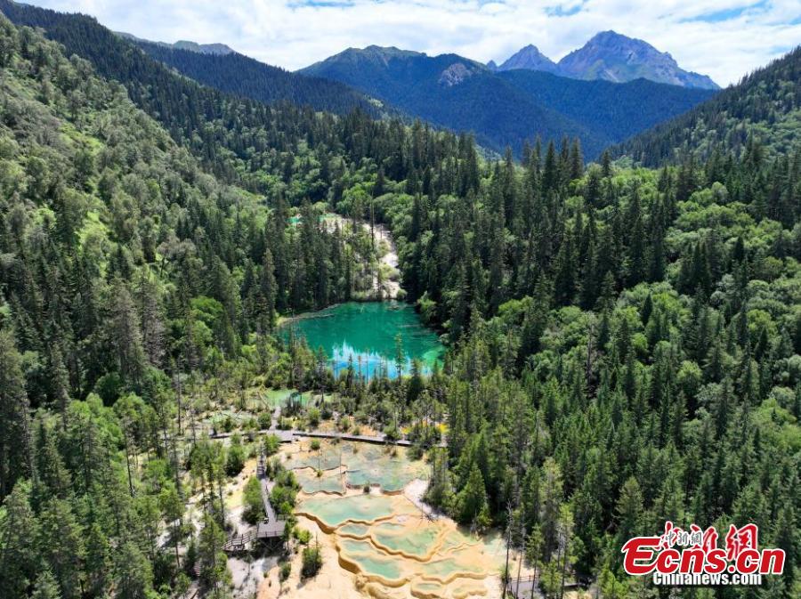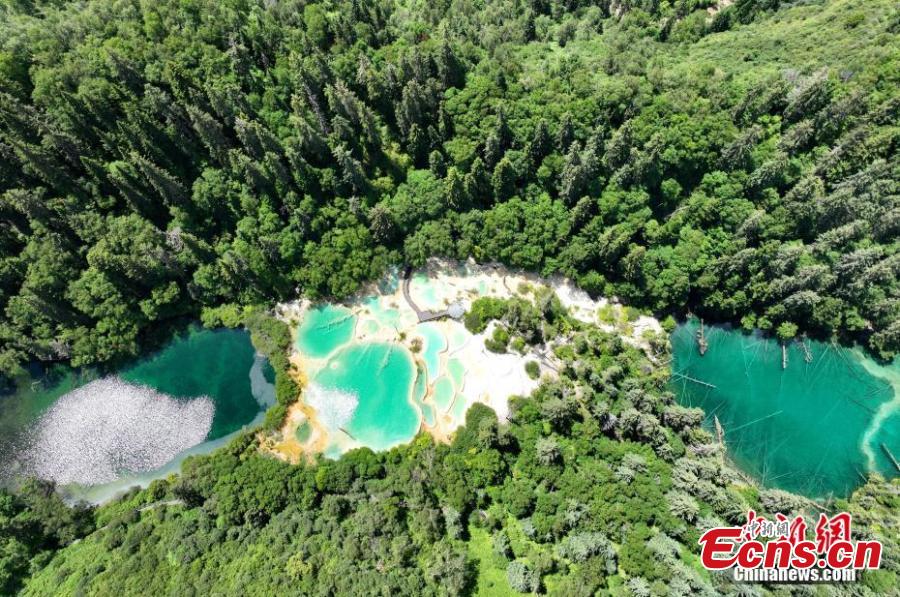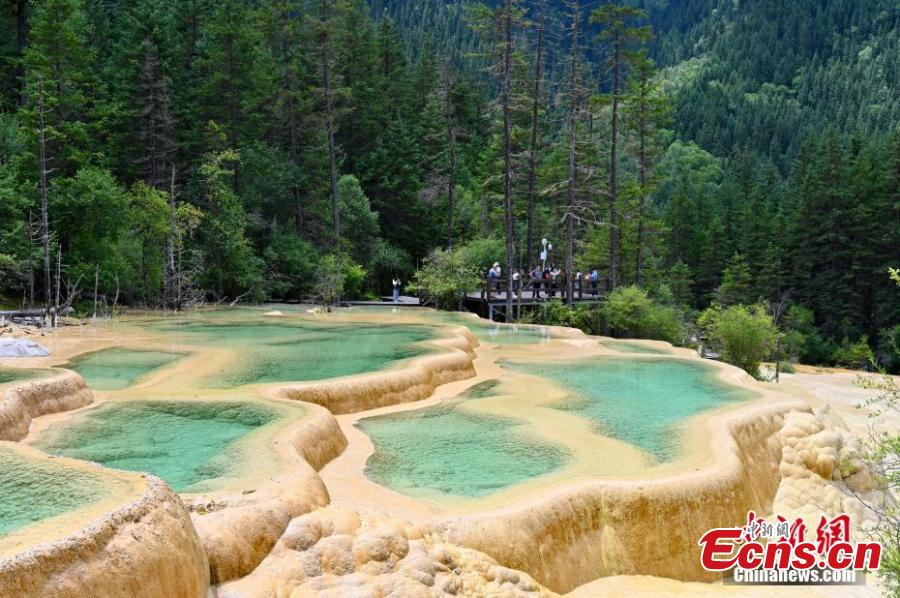 Picturesque scenery of Fairy Pool scenic area in Jiuzhaigou County, southwest China's Sichuan Province, Aug. 20, 2023. (Photo: China News Service/An Yuan)