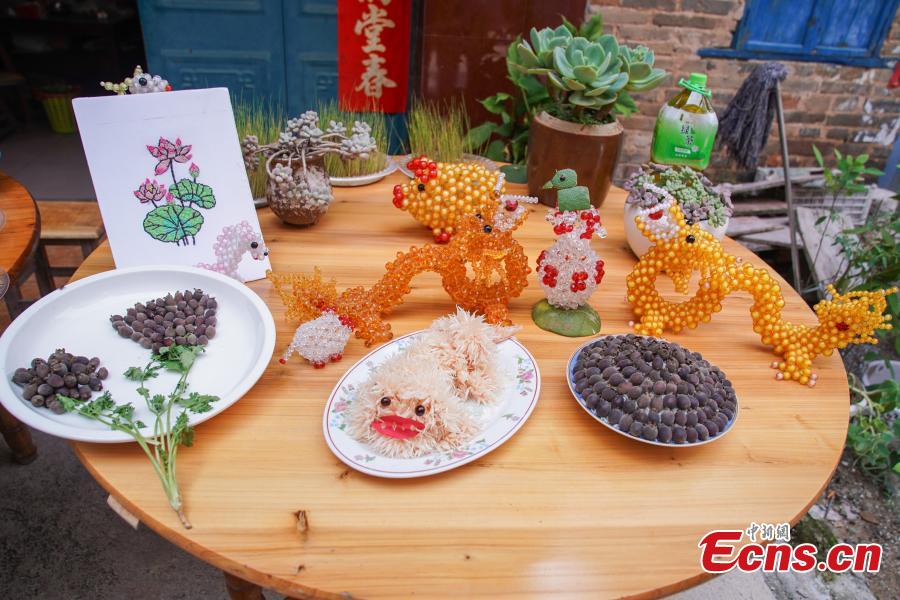 Artworks are displayed during "Saiqiao Festival", a celebration of the Qixi Festival in Nanning, south China's Guangxi Zhuang Autonomous Region, Aug. 21, 2023. (Photo: China News Service/Chen Guanyan)