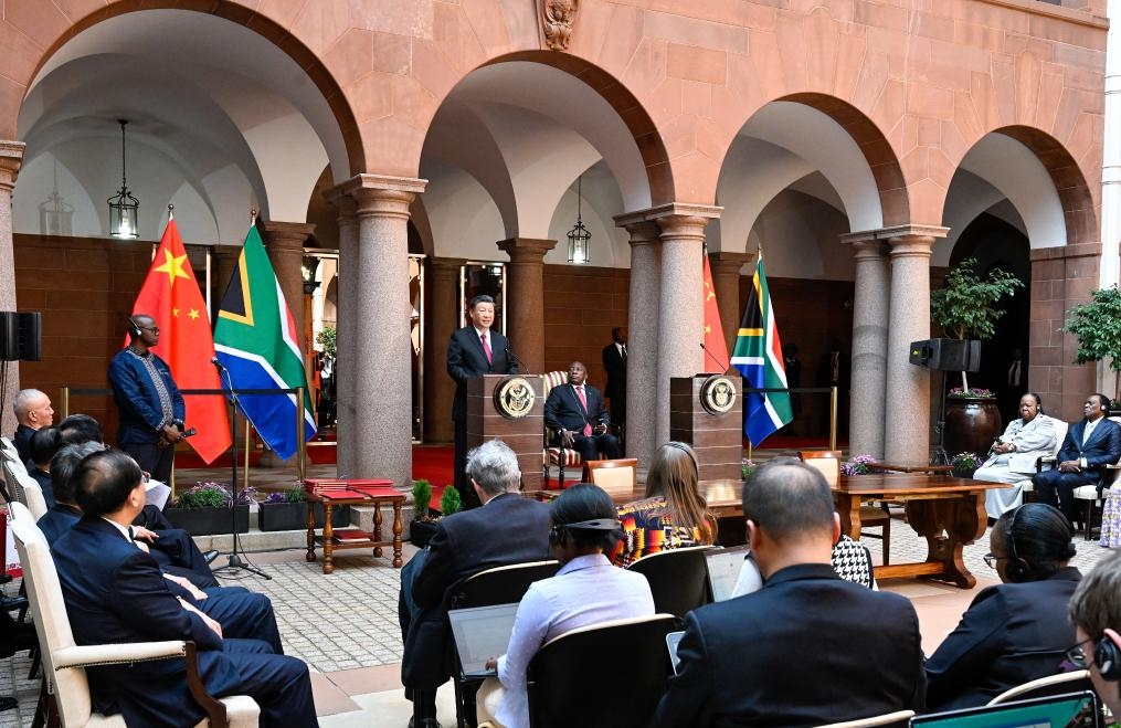 Recalling the fruitful meeting he just held with Ramaphosa, Xi said they exchanged views on the development of bilateral ties in the new era as well as the international and regional issues of common concern, reaching important consensus.
