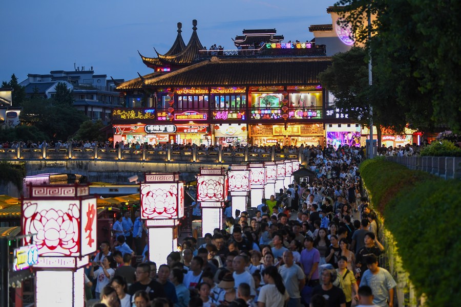 Tourists visit the Fuzi (Confucius) Temple scenic area in Nanjing, east China's Jiangsu Province, Aug. 18, 2023. (Xinhua/Li Bo)