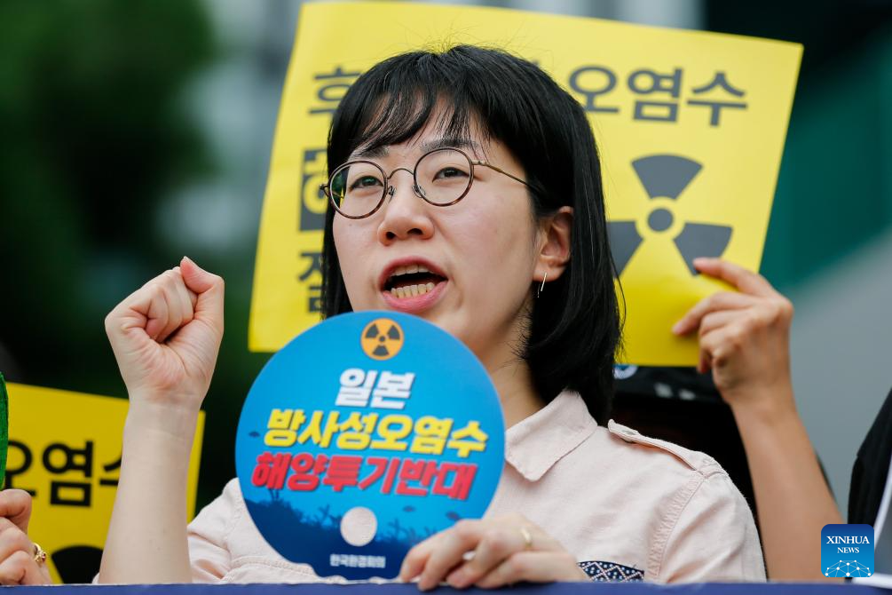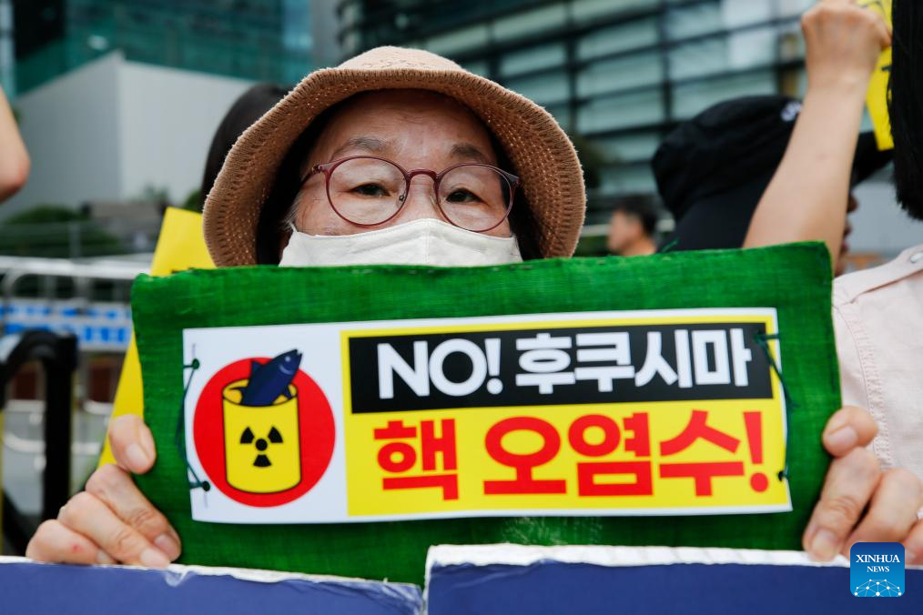 SEOUL, Aug. 22 (Xinhua) -- South Korean activists and politicians on Tuesday condemned Japan's decision to start dumping nuclear-contaminated wastewater from the crippled Fukushima Daiichi nuclear power plant into the ocean later this week.