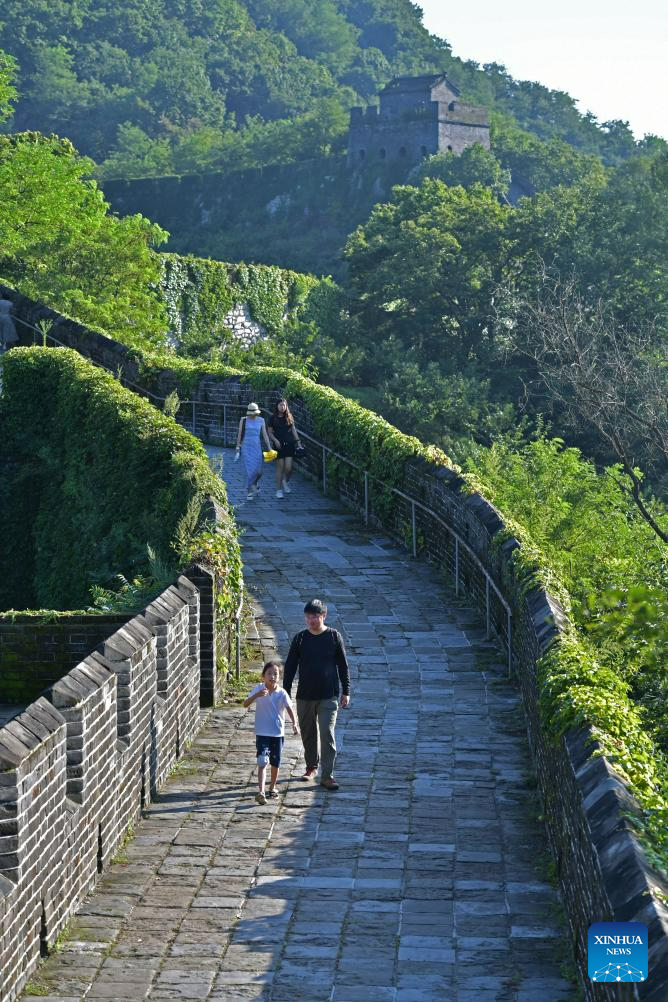 People visit the Hushan section of the Great Wall in Dandong City, northeast China's Liaoning Province, Aug. 23, 2023. (Xinhua/Zhang Xinjing)
