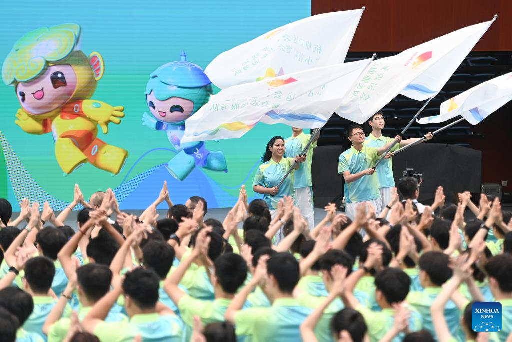 HANGZHOU, Aug. 24 (Xinhua) -- As the 19th Asian Games in Hangzhou marked its 30-day countdown on Thursday, some 37,600 volunteers for the Games were revealed at a ceremony held at Zhejiang University Zijingang Campus.