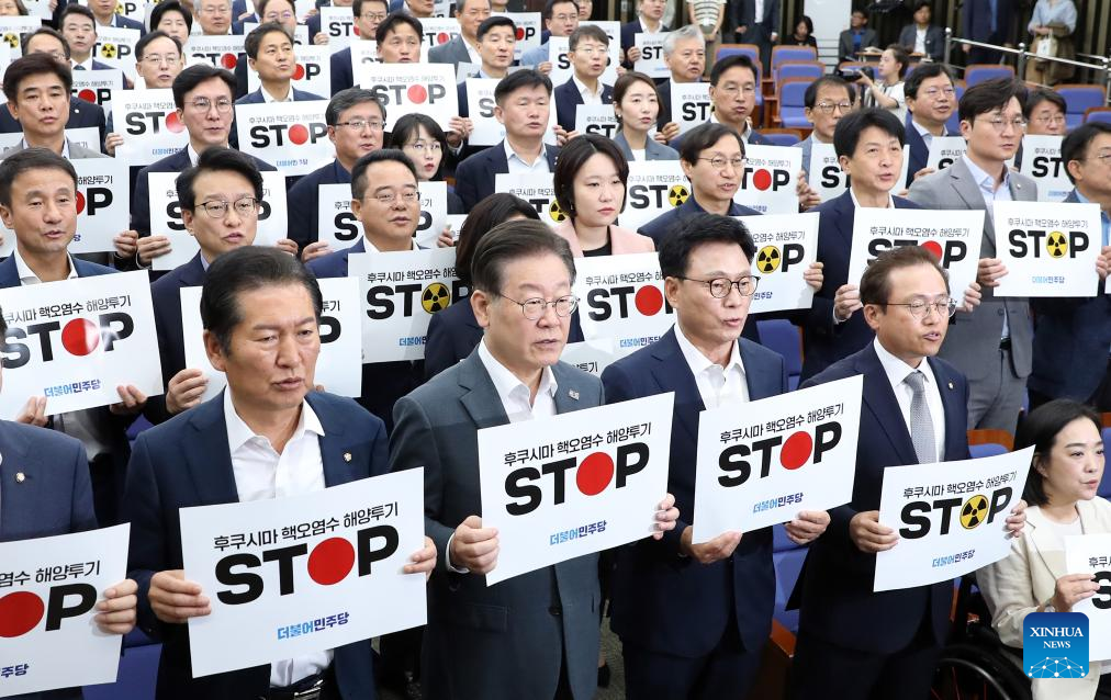 SEOUL, Aug. 24 (Xinhua) -- Lawmakers of the South Korean main opposition Democratic Party on Thursday protested against Japan's discharge of nuclear-contaminated wastewater into the ocean, pushing for bills to legislate the right to indemnity claims against the Japanese government.