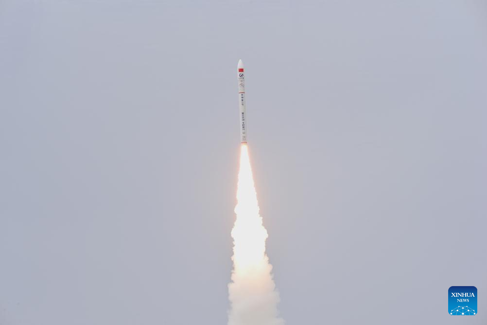 The commercial rocket blasted off at 12:59 p.m. (Beijing Time) from the launch site, carrying the Jilin-1 Kuanfu 02A satellite.
