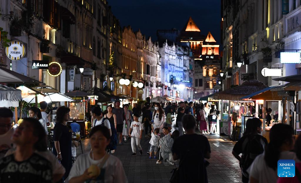 Tourists visit the Qilou old street in Haikou, south China's Hainan Province, Aug. 21, 2023. (Xinhua/Yang Guanyu)