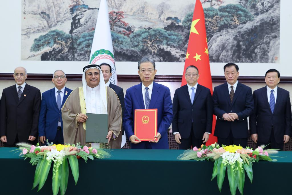 After the talks, Zhao and Adel Al Asoomi jointly signed a memorandum of understanding on establishing an exchange mechanism between the NPC of China and the Arab Parliament.