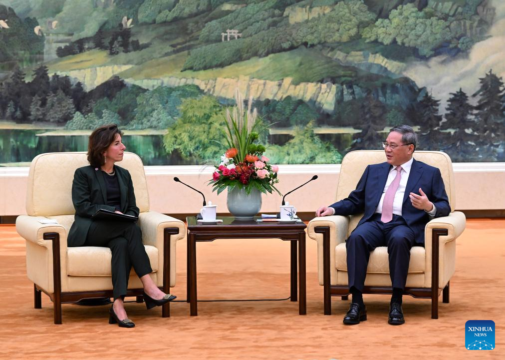 BEIJING, Aug. 29 (Xinhua) -- Chinese Premier Li Qiang met with visiting U.S. Commerce Secretary Gina Raimondo on Tuesday in Beijing, calling on both sides to enhance mutually beneficial cooperation.