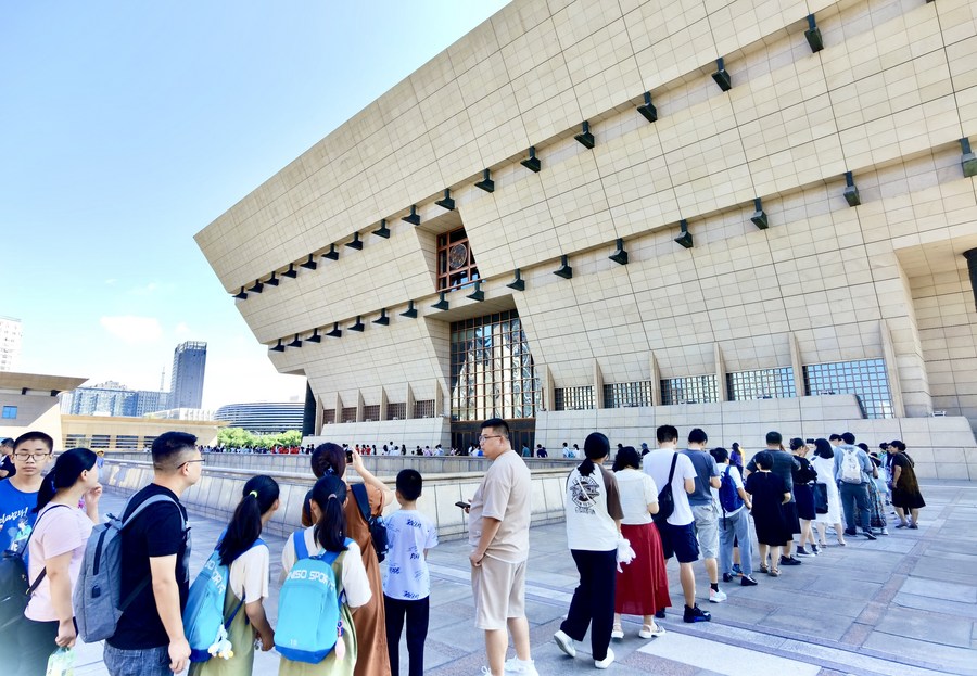 The Shaanxi History Museum in the city of Xi'an, capital of northwest China's Shaanxi Province, also saw growing enthusiasm from visitors, and their tickets are highly sought-after during the summer vacation. Despite a daily maximum capacity of 12,000 visitors, the museum's ticket booking platform receives more than 600,000 clicks each day, and tickets are fully booked the moment they become available for reservation.