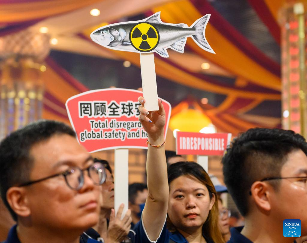 People attend a rally against Japan's dumping of nuclear-contaminated wastewater into the ocean in Selangor state, Malaysia, Aug 27, 2023. [Photo/Xinhua]