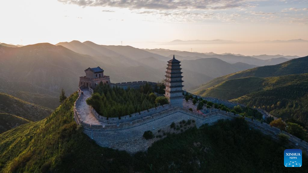 This photo taken on Aug. 30, 2023 shows the Yanmen Pass in Daixian County, north China's Shanxi Province. The Yanmen Pass is a famed part of the Great Wall. The Great Wall, a UNESCO World Heritage Site, consists of many interconnected walls, some dating back 2,000 years. (Xinhua/Liu Jinhai)
