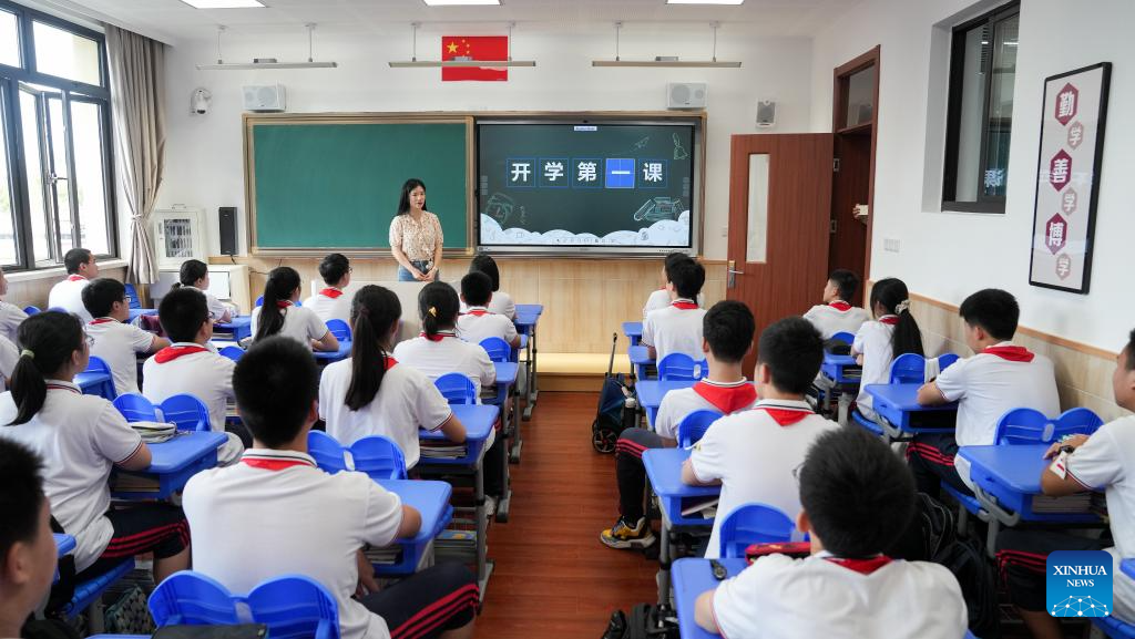Students have a class at a primary school in Beijing, capital of China, Sept. 1, 2023. New school semester kicked off in many parts of China on Friday. (Xinhua/Li Xin)