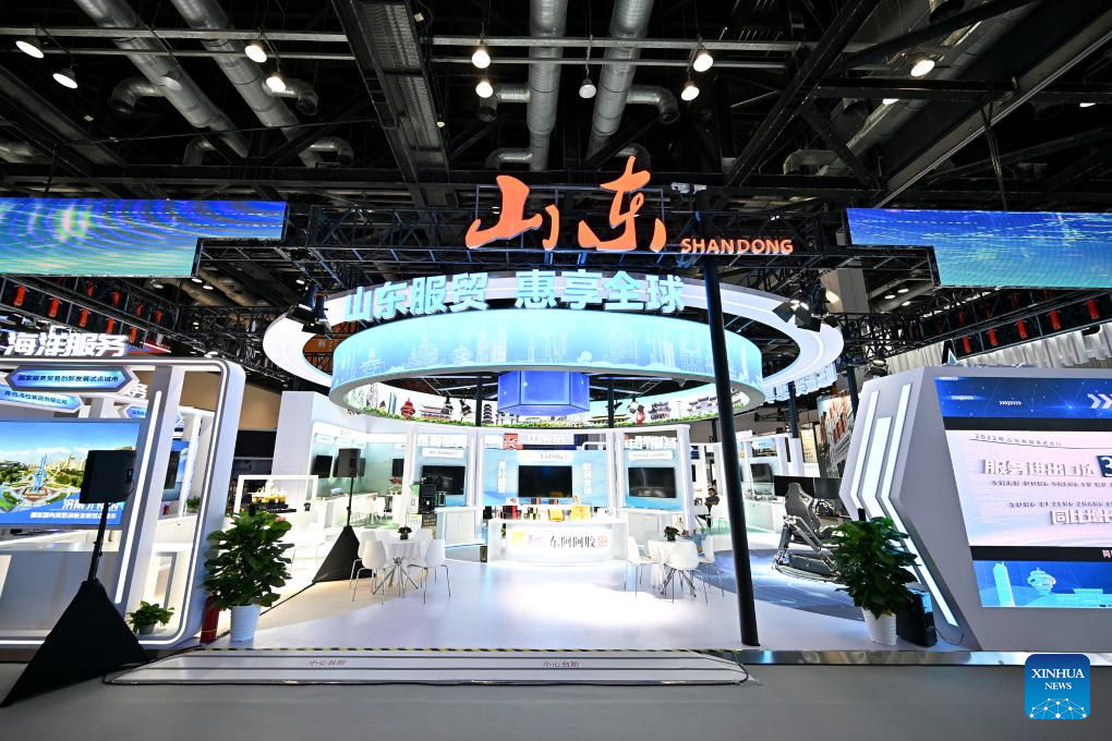 This photo taken on Sept. 1, 2023 shows the booth of Shandong Province at the China National Convention Center in Beijing, capital of China.
