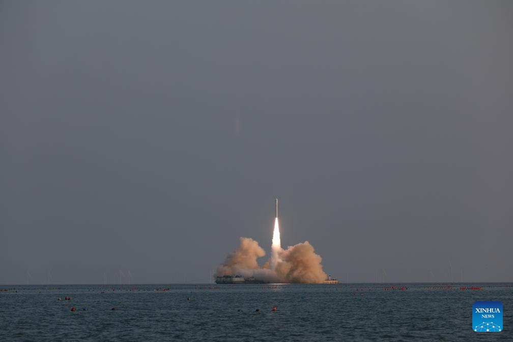 HAIYANG, Shandong, Sept. 5 (Xinhua) -- China on Tuesday sent a sea-launched rocket into space from the waters surrounding Haiyang, a coastal city in the eastern province of Shandong, placing four satellites into planned orbit.