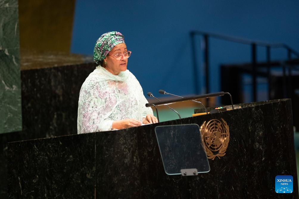 UN Deputy Secretary-General Amina Mohammed speaks at the first plenary meeting of the 78th session of UN General Assembly at the UN headquarters in New York, on Sept. 5, 2023. The 78th session of the UN General Assembly was declared open on Tuesday by new General Assembly President Dennis Francis. (Xinhua/Xie E)