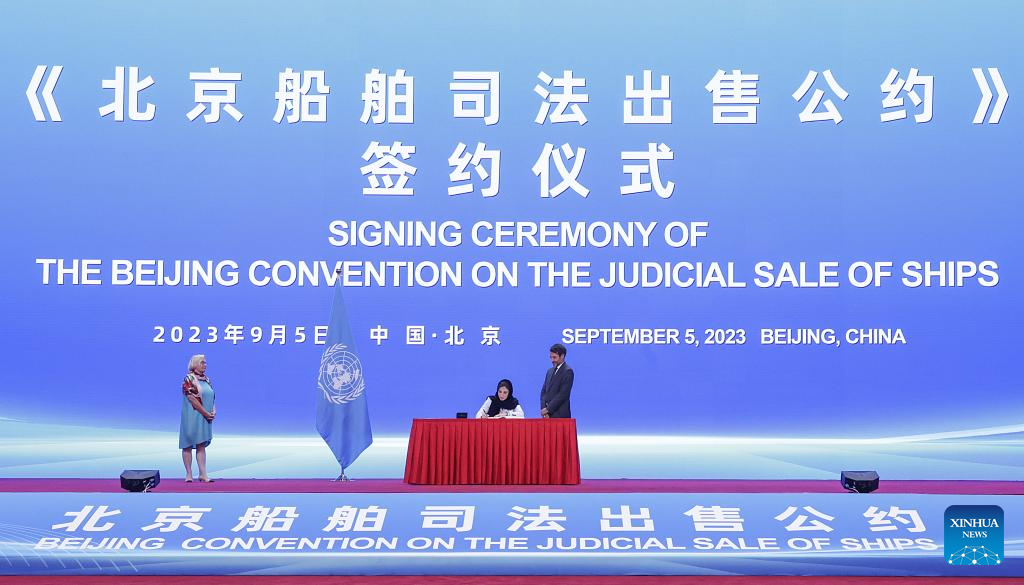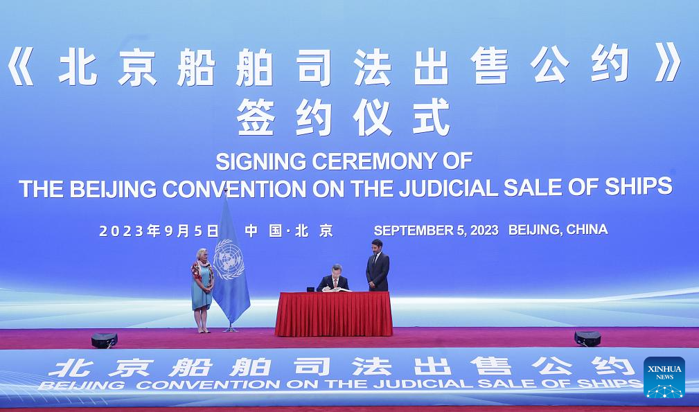 BEIJING, Sept. 5 (Xinhua) -- A signing ceremony for the United Nations (UN) Convention on the International Effects of Judicial Sales of Ships, also known as the Beijing Convention on the Judicial Sale of Ships, took place in Beijing on Tuesday.