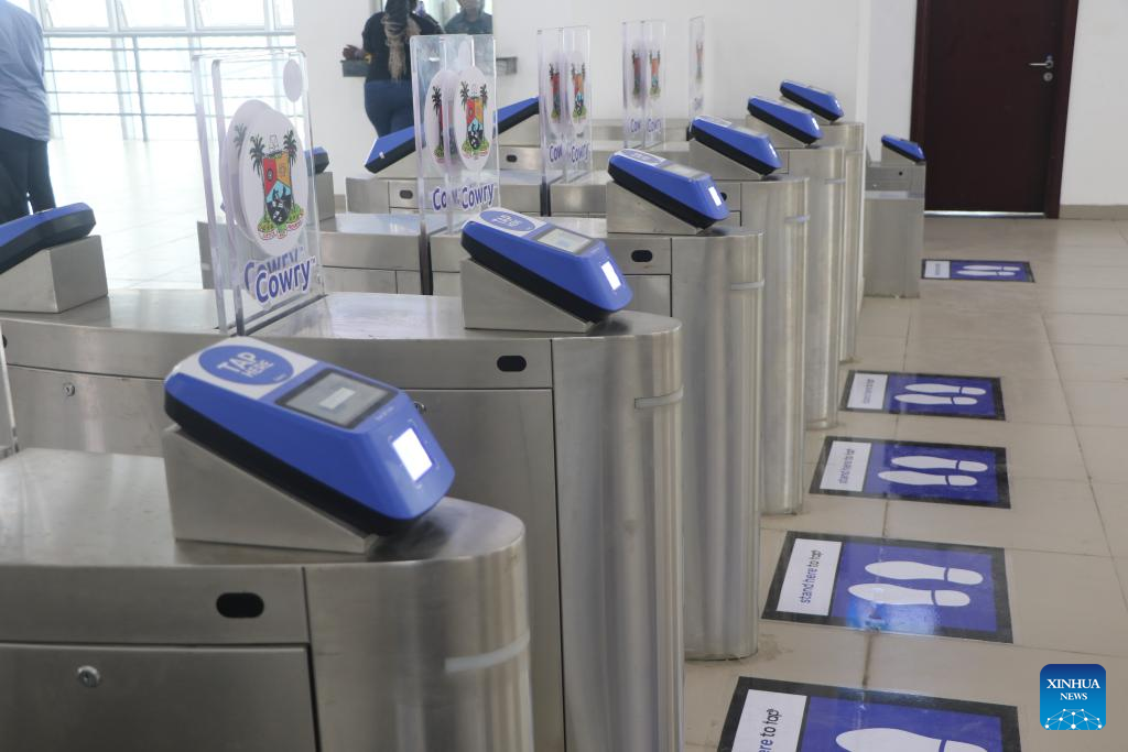 This photo taken on Sept. 4, 2023 shows the gate machines at a station of the Lagos Rail Mass Transit Blue Line in Lagos, Nigeria. Commuters who had long endured the challenges of overcrowded roads and prolonged commute time in Nigeria's Lagos were visibly thrilled by the convenience, comfort, and speed of the city's light rail which began commercial operation on Monday. (Photo by Emmanuel Osodi/Xinhua)
