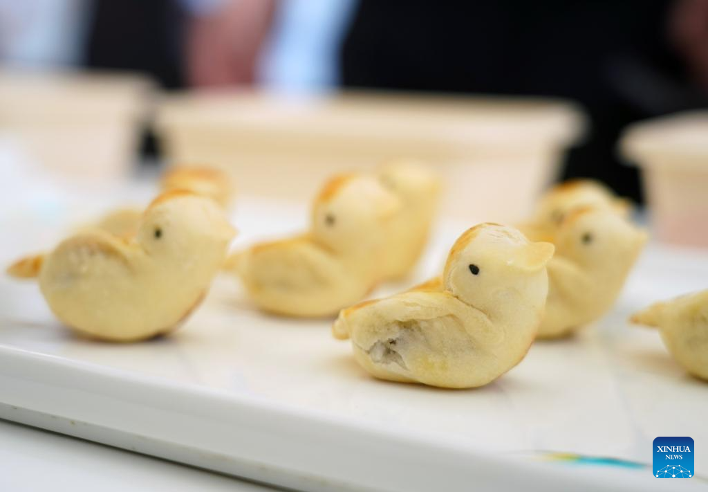 This photo taken on Sept. 6, 2023 shows pastries exhibited at the exhibition hall of Beijing time-honored brand during the 2023 China International Fair for Trade in Services (CIFTIS) in Beijing, capital of China. A number of time-honored brands in catering business made their debut at the exhibition hall of Beijing time-honored brand during the 2023 CIFTIS, attracting numerous guests to come for a taste. (Xinhua/Ren Chao)