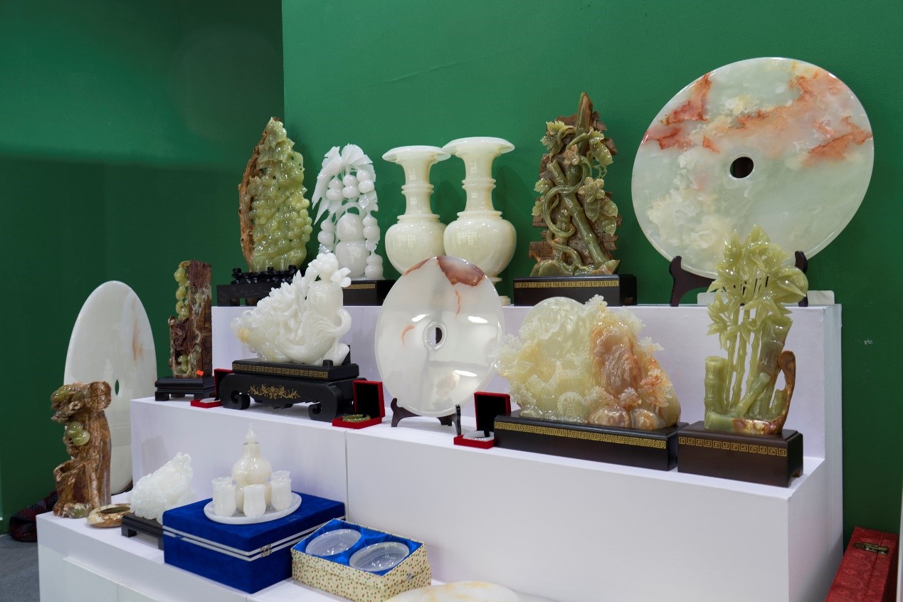 Photo shows jade ware exhibited in the pavilion of Pakistan at the 2023 China International Fair for Trade in Services (CIFTIS) in Beijing, capital of China, Sept. 2, 2023. (People’s Daily Online/Chang Sha)