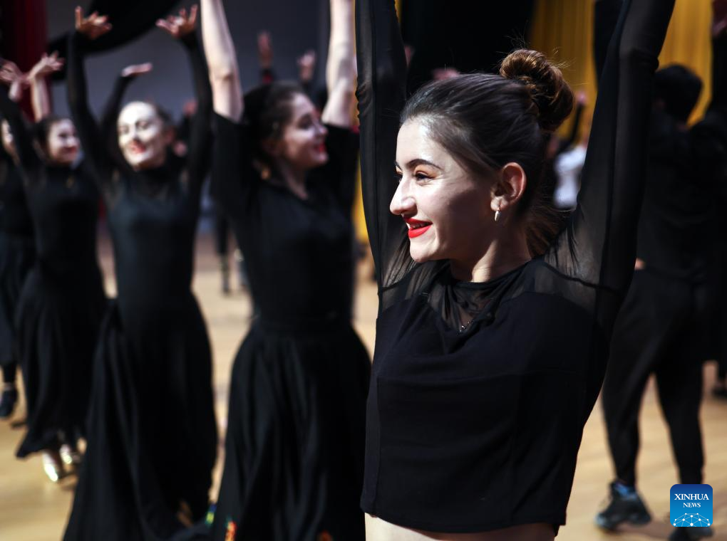 Artists of a local art troupe rehearse a dance in Taxkorgan Tajik Autonomous County, northwest China's Xinjiang Uygur Autonomous Region, Sept. 4, 2023. Taxkorgan Tajik Autonomous County has made great efforts in the integration of local culture and tourism in recent years, enriching the cultural life of people and promoting foreign exchanges. The county also carries forward traditional Chinese culture to build cultural tourism festivals, which shows the scenery of the Pamir Plateau and the happy and stable life of the people. (Xinhua/Wang Fei)