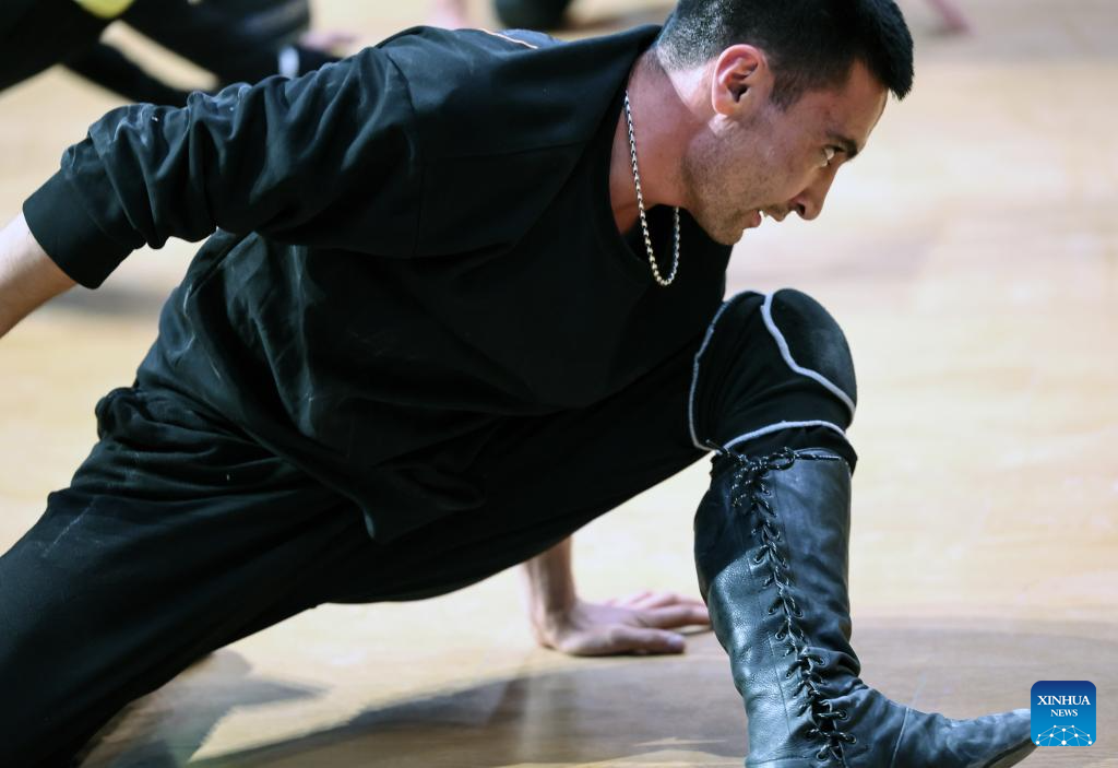 An artist of a local art troupe rehearses an acrobatic show in Taxkorgan Tajik Autonomous County, northwest China's Xinjiang Uygur Autonomous Region, Sept. 4, 2023. Taxkorgan Tajik Autonomous County has made great efforts in the integration of local culture and tourism in recent years, enriching the cultural life of people and promoting foreign exchanges. The county also carries forward traditional Chinese culture to build cultural tourism festivals, which shows the scenery of the Pamir Plateau and the happy and stable life of the people. (Xinhua/Lan Hongguang)