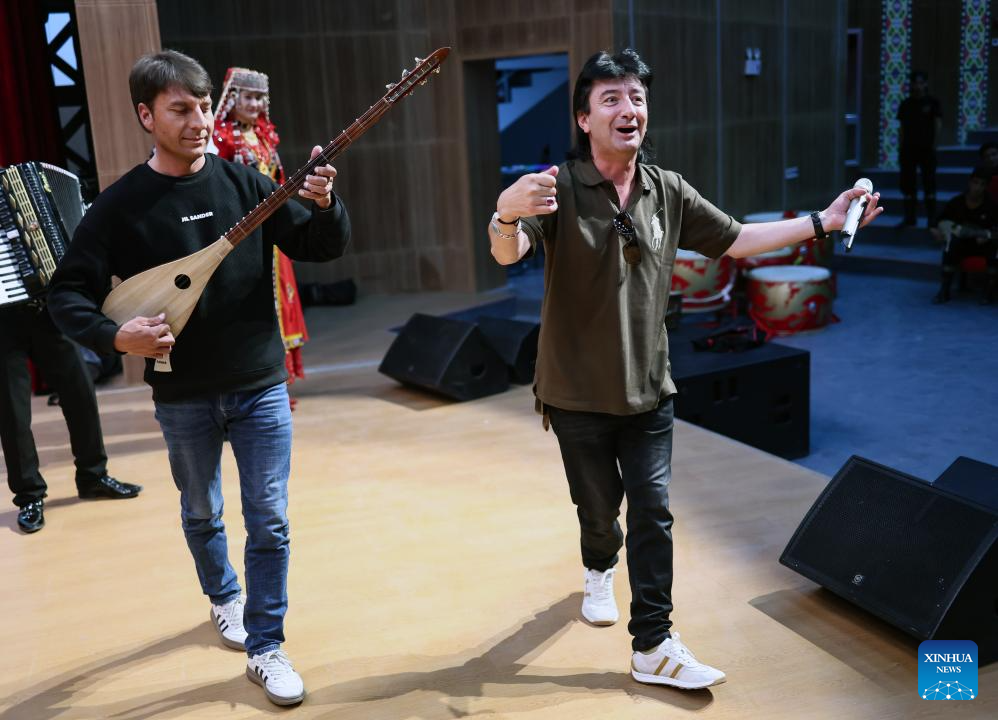 Artists of a local art troupe rehearse a program for a music festival in Taxkorgan Tajik Autonomous County, northwest China's Xinjiang Uygur Autonomous Region, Sept. 4, 2023. Taxkorgan Tajik Autonomous County has made great efforts in the integration of local culture and tourism in recent years, enriching the cultural life of people and promoting foreign exchanges. The county also carries forward traditional Chinese culture to build cultural tourism festivals, which shows the scenery of the Pamir Plateau and the happy and stable life of the people. (Xinhua/Lan Hongguang)