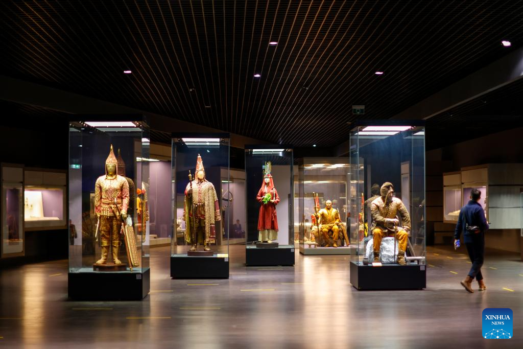 This photo taken on Sept. 8, 2023 shows part of collections displayed at the National Museum of the Republic of Kazakhstan in Astana, Kazakhstan. The National Museum of the Republic of Kazakhstan established in July 2014 is one of the largest museums in central Asia. It contains seven halls with a total exhibition area of 14,000 square meters. (Xinhua/Li Muzi)