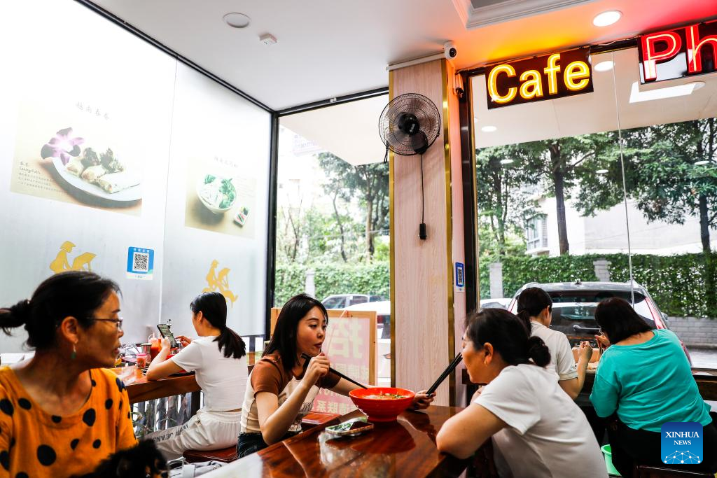 People dine at a Vietnamese pho restaurant in Nanning, south China's Guangxi Zhuang Autonomous Region, Sept. 8, 2023.