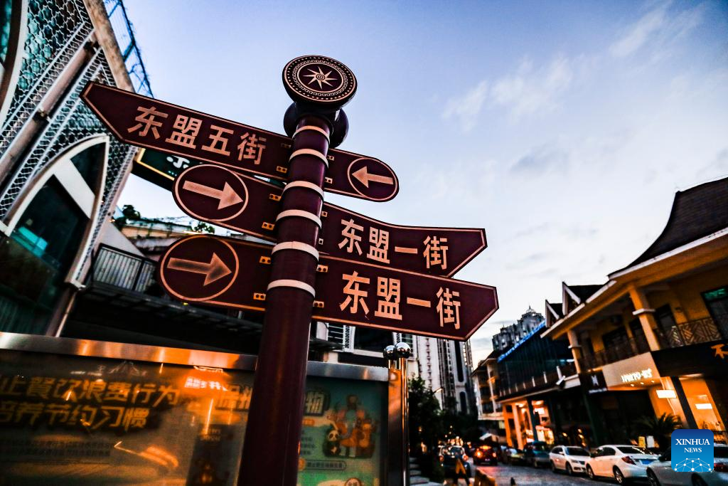 This photo taken on Sept. 7, 2023 shows road signs at the ASEAN business district in Nanning, south China's Guangxi Zhuang Autonomous Region.
