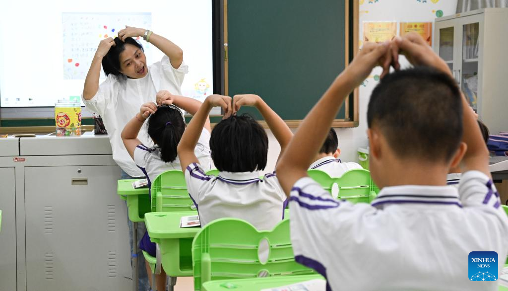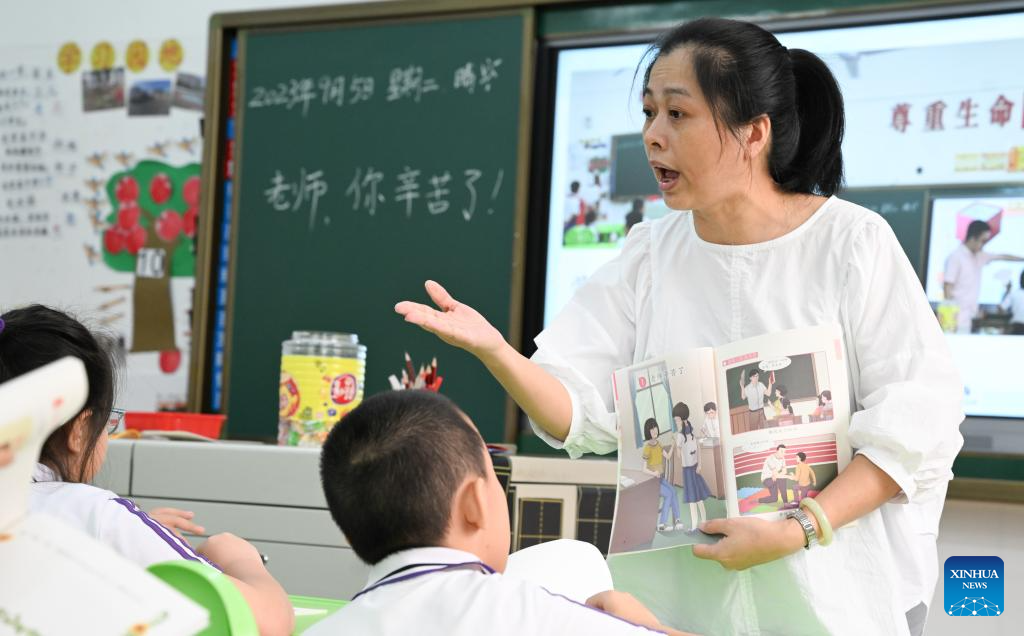 Fu Yaohui gives a class at Hainan (Haikou) Special School in Haikou, south China's Hainan Province, Sept. 5, 2023. (Xinhua/Yang Guanyu)